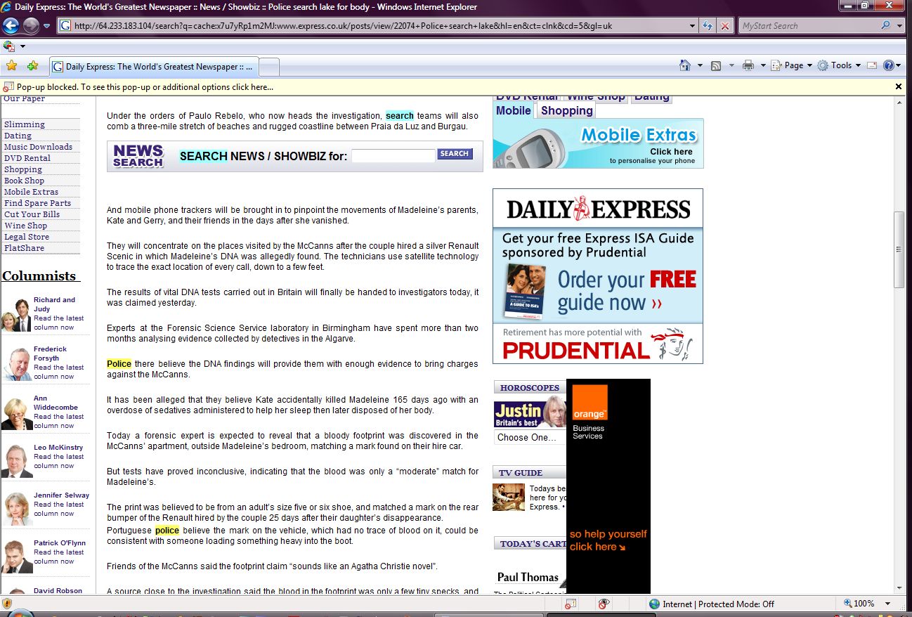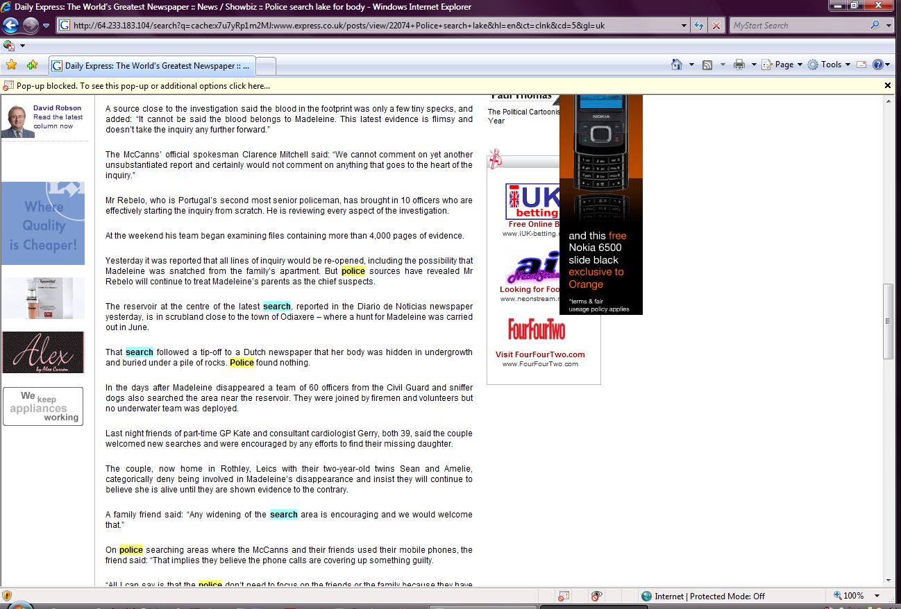 the blood belongs to Madeleine. This latest evidence is flimsy