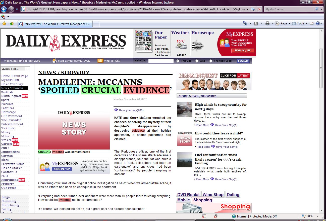 MADELEINE: MCCANN'S 'SPOILED CRUCIAL EVIDENCE' |