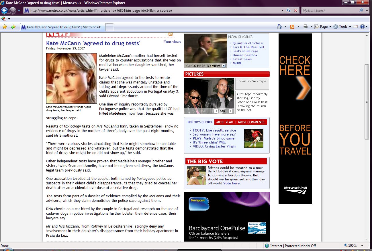 toxicology tests on Mrs McCann's hair, taken