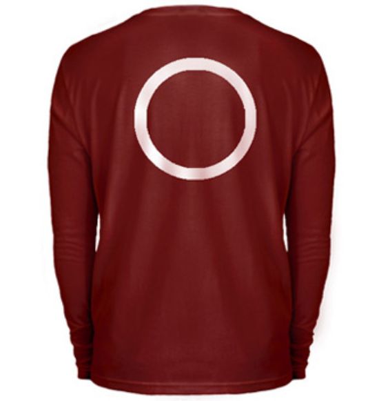 distinctive burgundy long sleeve top, on