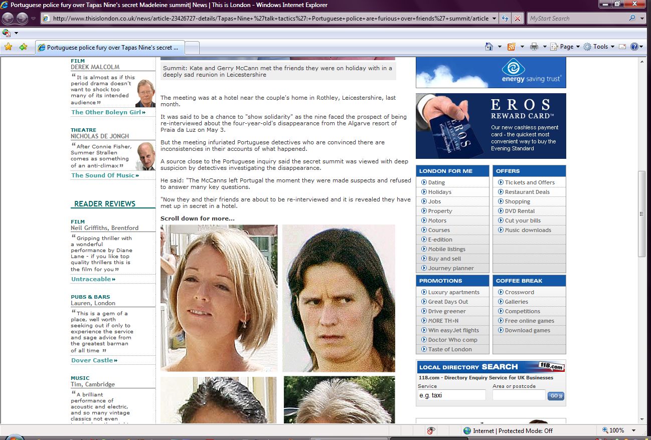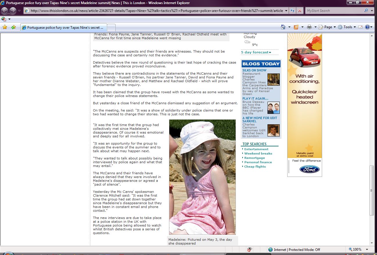Yesterday the Mc Canns' spokesman Clarence Mitchell said: "It was the first time the group had sat down together since Madeleine's disappearance but they have been in constant email and phone contact."