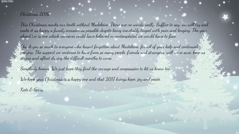 Madeleine wants for Christmas - and thats to be back home. If you know
