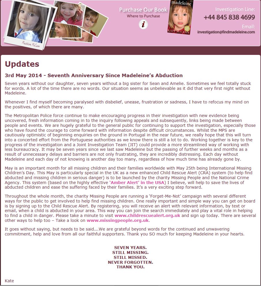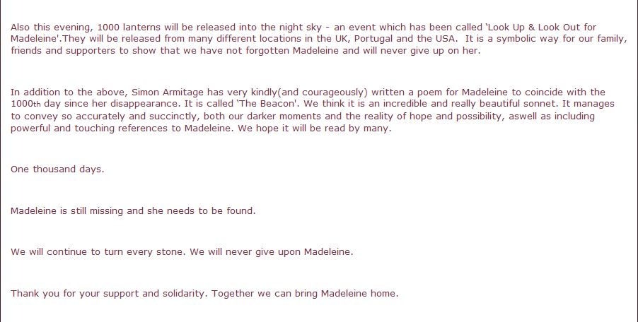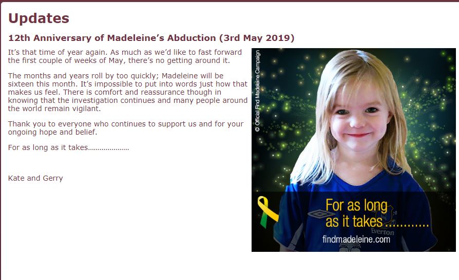 12th Anniversary of Madeleine’s Abduction (3rd May 2019) |