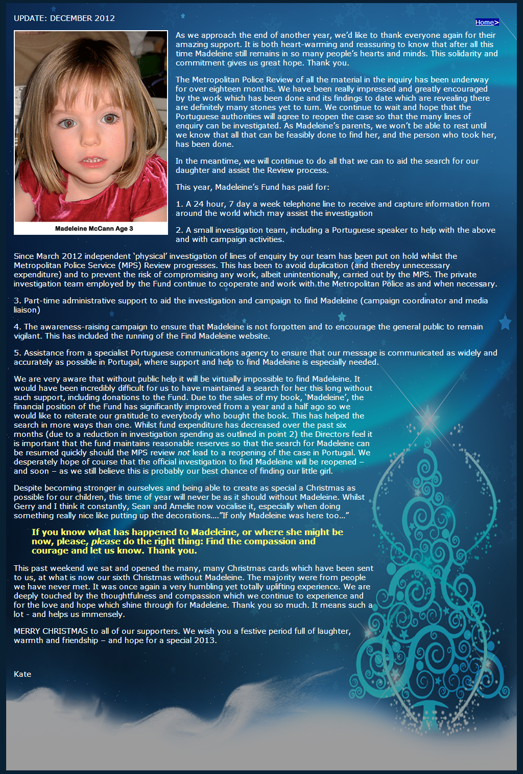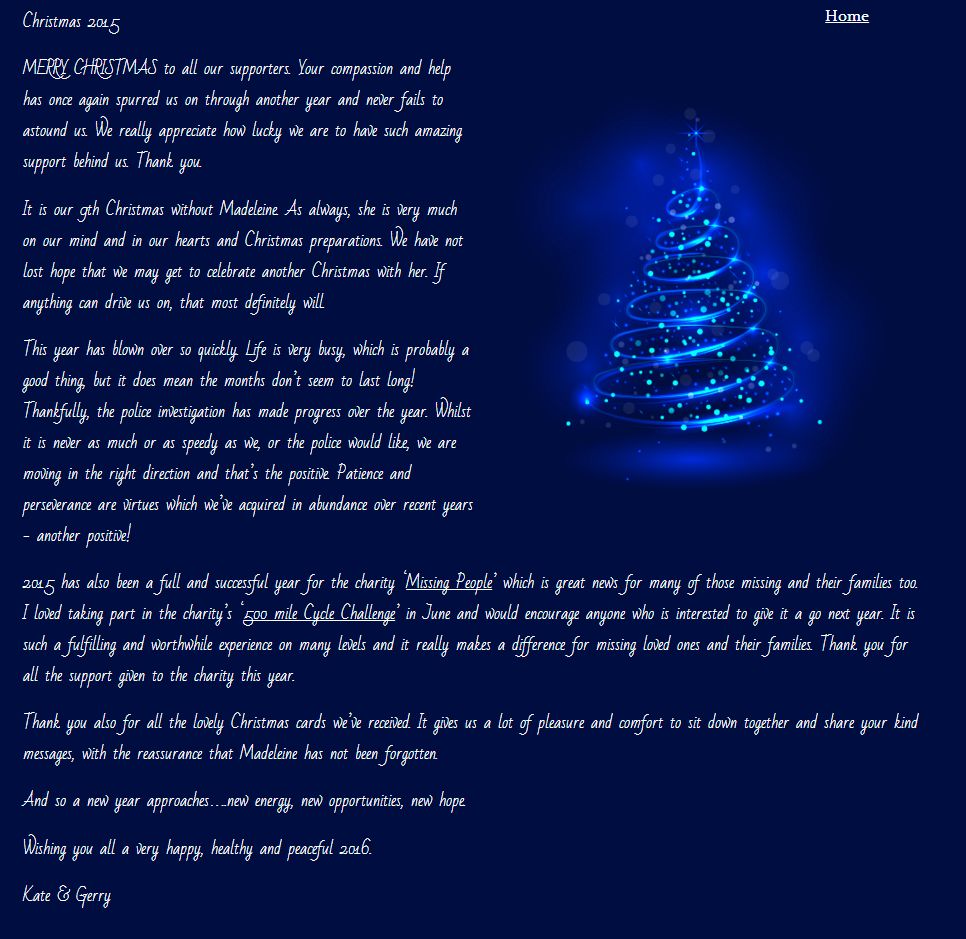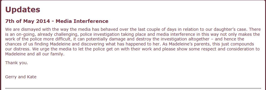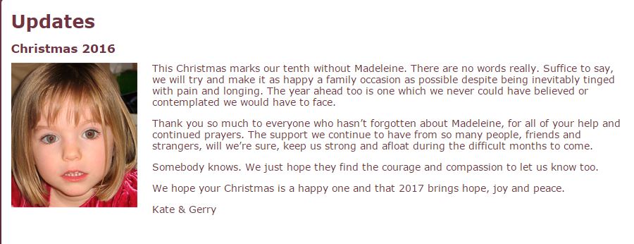 is for Madeleine to be home. If you know something say something |