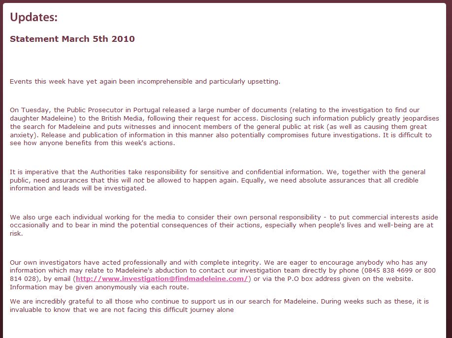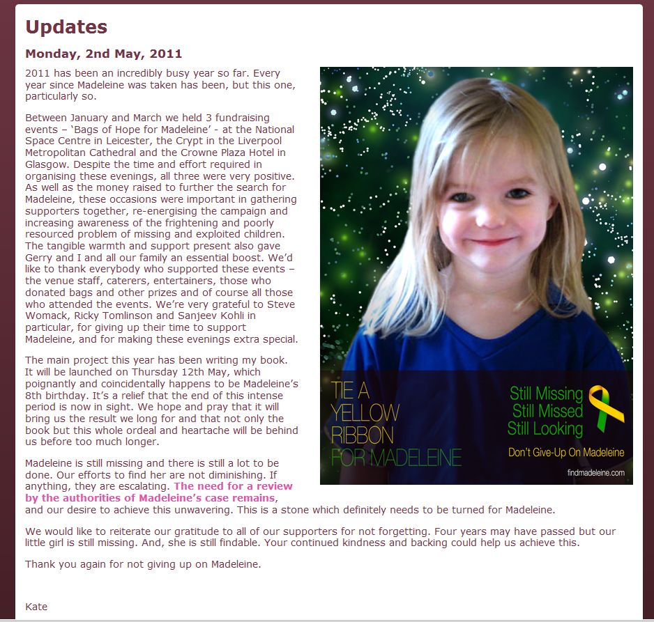 11th Anniversary of Madeleine’s Abduction |