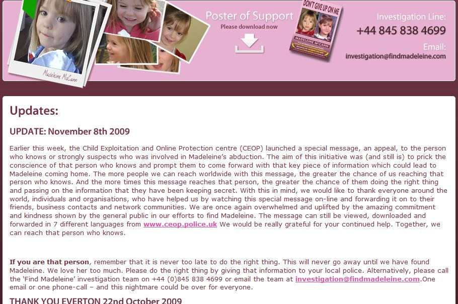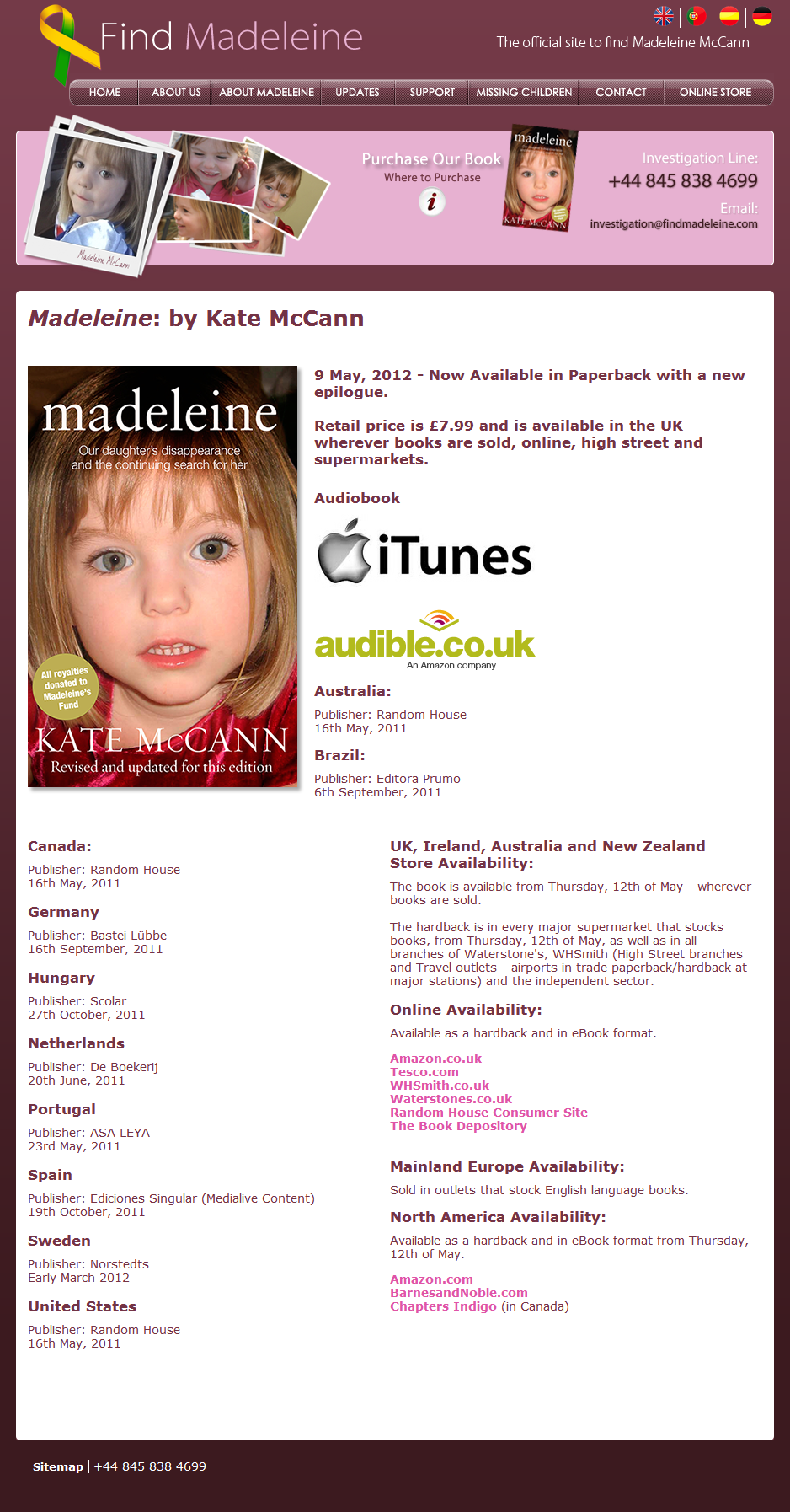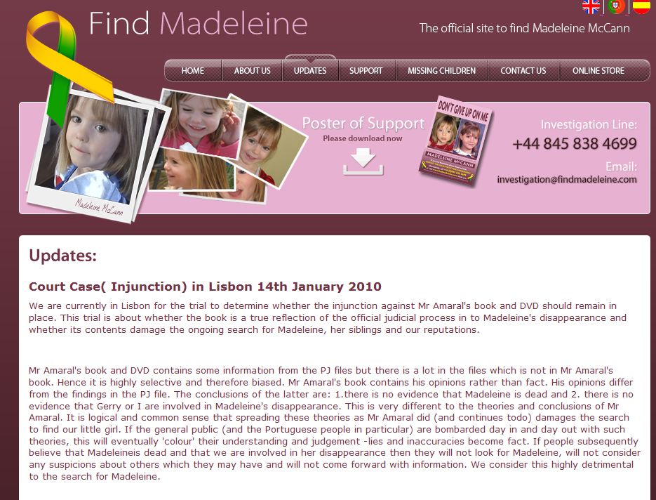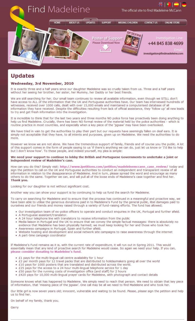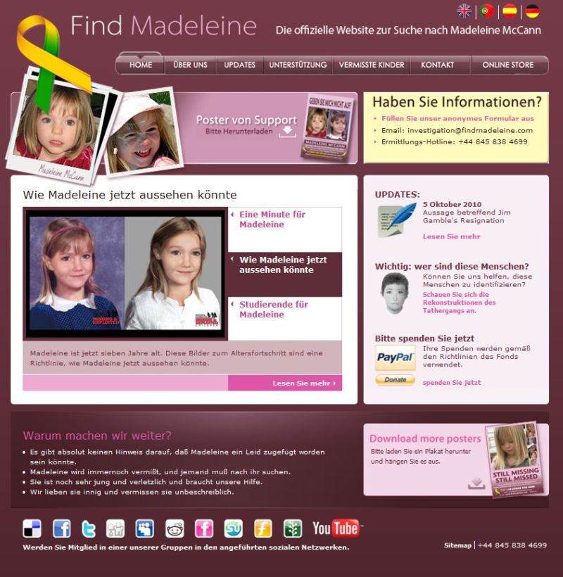 today the Find Madeleine website can be accessed in 3 Languages. English