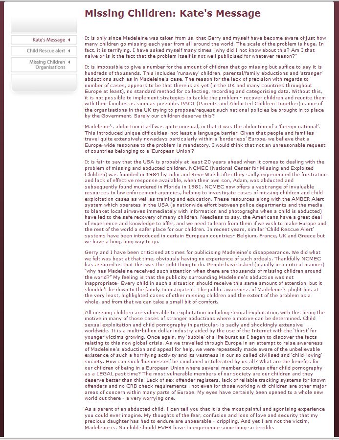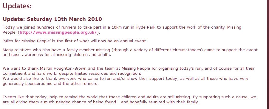 Friday 25th May 2012 update International Missing Children’s